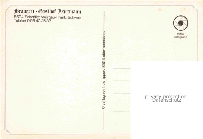 74013476 Wuergau Brauerei-Gasthof Hartmann Biergarten postalisch nicht gelaufen Erhaltung siehe scans [FriedD77] KatCode: 11110009471185