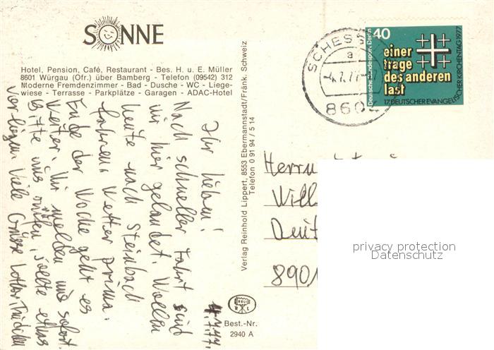 73646380 alte Postkarte Wuergau Hotel Pension Restaurant Sonne postalisch gelaufen Erhaltung siehe scans [WerneD78] KatCode: 11110009471185