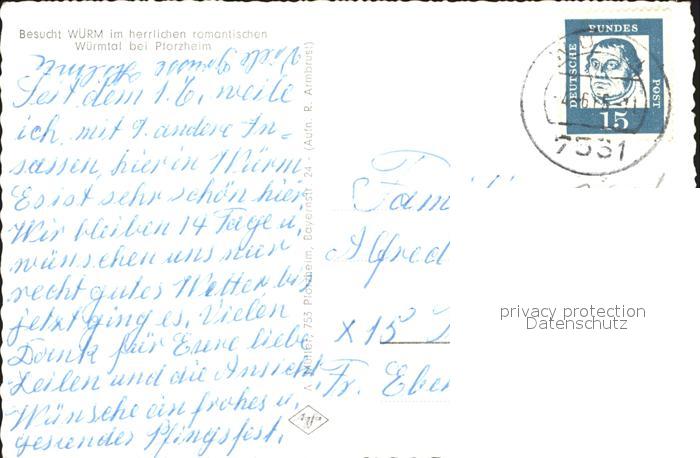 31728367 alte Postkarte Wuerm Pforzheim Blick Kirche Jugendheim postalisch gelaufen Erhaltung siehe scans KatCode: 11110008231000
