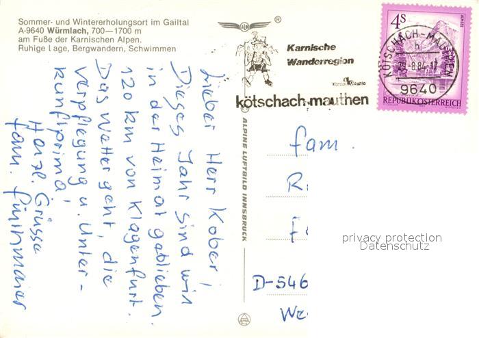 73354656 alte Postkarte Wuermlach Fliegeraufnahme postalisch gelaufen Erhaltung siehe scans [WerneD78] KatCode: 11390212020307