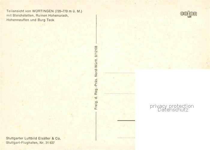 72832162 Wuertingen Fliegeraufnahme Bleichstetten Ruinen Hohenurach Hohenneuffen Burg-Teck postalisch nicht gelaufen Erhaltung siehe scans [LiesaD40] KatCode: 11110008415093