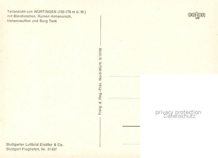 73541125 Wuertingen Fliegeraufnahme mit Bleichstetten Ruinen Hohenurach Hohenneuffen und Burg Teck postalisch nicht gelaufen Erhaltung siehe scans [WerneD78] KatCode: 11110008415093