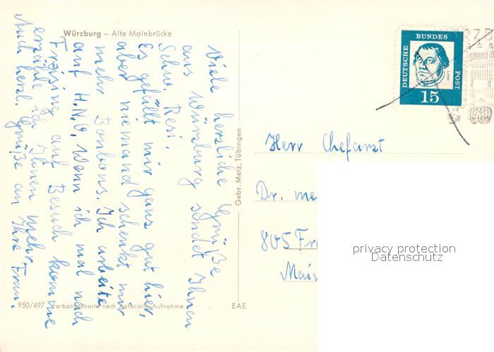 73132942 alte Postkarte Wuerzburg Alte Mainbruecke postalisch gelaufen Erhaltung siehe scans [FriedD77] KatCode: 11110009663000