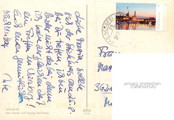 73126983 alte Postkarte Wuerzburg Alter Kranen Festung Marienberg postalisch gelaufen Erhaltung siehe scans [KathaD81] KatCode: 11110009663000