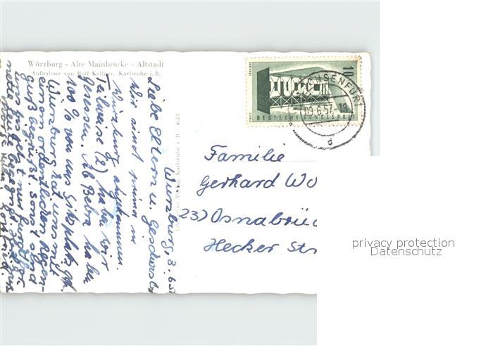 72108484 alte Postkarte WueRZBURG Bayern Alte Mainbruecke postalisch gelaufen Erhaltung siehe scans KatCode: 11110009663000