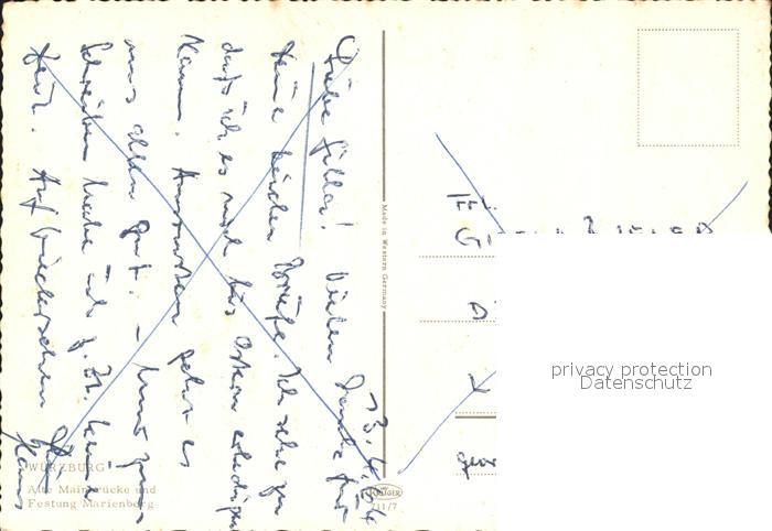 72376040 WueRZBURG Bayern Alte Mainbruecke Festung Marienberg postalisch nicht gelaufen Erhaltung siehe scans KatCode: 11110009663000