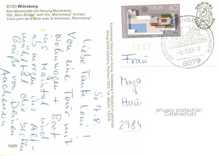 72889076 alte Postkarte WueRZBURG Bayern alte Mainbruecke Festung-Marienburg postalisch gelaufen Erhaltung siehe scans [LiesaD40] KatCode: 11110009663000