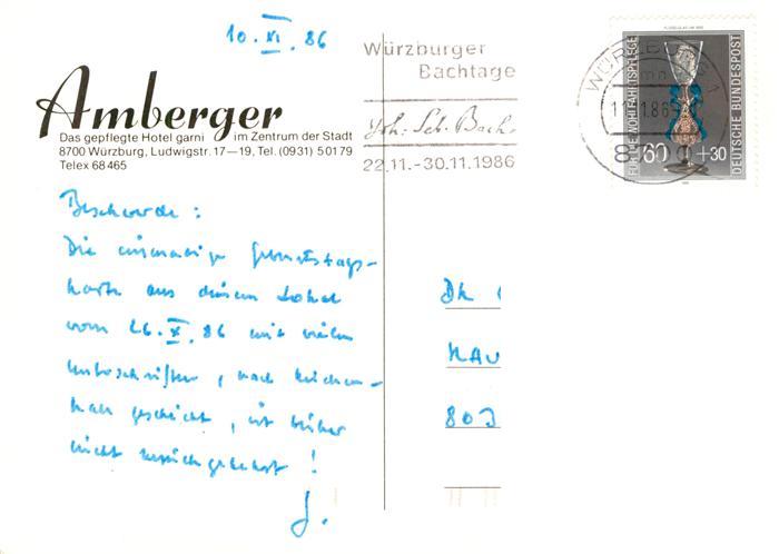 73894835 alte Postkarte Wuerzburg Bayern Amberger Hotel garni Gastraeume postalisch gelaufen Erhaltung siehe scans [FriedD77] KatCode: 11110009663000