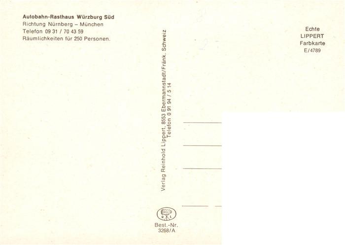 73883152 Wuerzburg Bayern Autobahn Rasthaus Wuerzburg Sued Gastraeume postalisch nicht gelaufen Erhaltung siehe scans [FriedD77] KatCode: 11110009663000