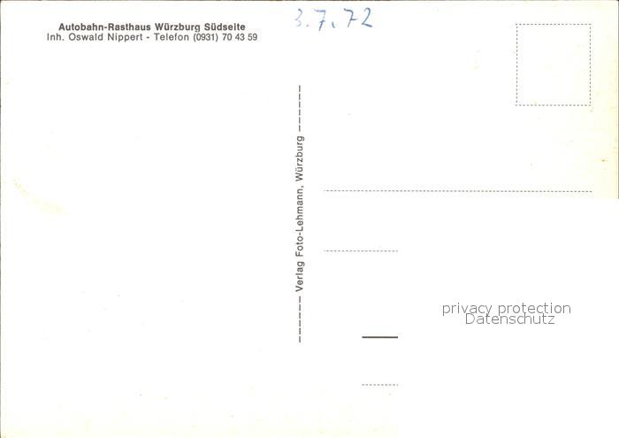 72126221 WueRZBURG Bayern Autobahn Rasthaus Wuerzburg Suedseite postalisch nicht gelaufen Erhaltung siehe scans KatCode: 11110009663000