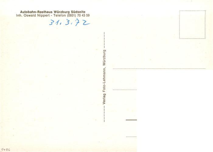 73894475 Wuerzburg Bayern BAB Rasthaus Wuerzburg Suedseite postalisch nicht gelaufen Erhaltung siehe scans [FriedD77] KatCode: 11110009663000