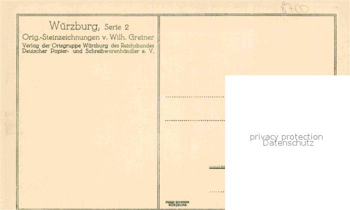 42877904 WueRZBURG Bayern Blick vom Turm Marienkapelle Orig.-Steinzeichnungen v. Wilh. Greiner postalisch nicht gelaufen Erhaltung siehe scans [NatalD47] KatCode: 11110009663000