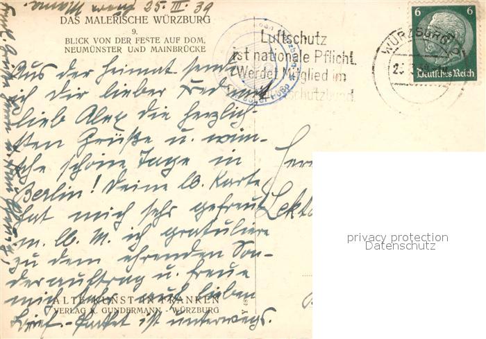 73712221 WueRZBURG Bayern Blick von der Feste auf Dom Neumuenster und Mainbruecke postalisch gelaufen Erhaltung siehe scans [FriedD77] alte Postkarte Frie Katcode 11110009663000