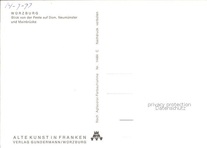 72394523 WueRZBURG Bayern Blick von der Feste auf Dom Neumuenster und Mainbruecke postalisch nicht gelaufen Erhaltung siehe scans KatCode: 11110009663000