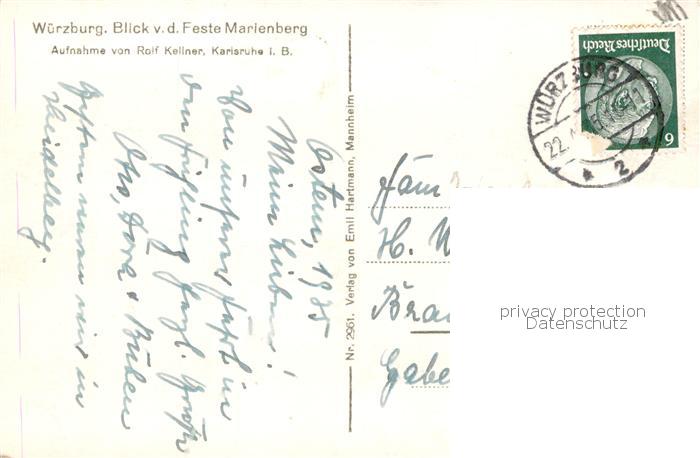 73812071 WueRZBURG Bayern Blick von der Feste Marienberg postalisch gelaufen Erhaltung siehe scans [WerneD78] alte Postkarte Wern Katcode 11110009663000