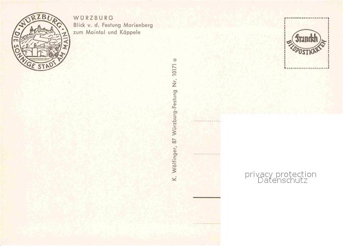 72772679 WueRZBURG Bayern Blick von der Festung Marienberg zum Maintal und Kaeppele postalisch nicht gelaufen Erhaltung siehe scans [AndreD76] KatCode: 11110009663000
