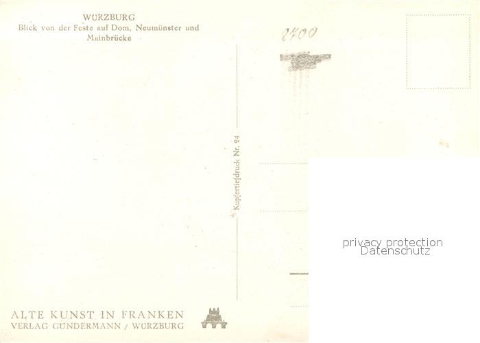 72940343 WueRZBURG Bayern Blick von der Veste auf Dom Neumuenster und Mainbruecke Serie Alte Kunst in Franken postalisch nicht gelaufen Erhaltung siehe scans [FriedD77] KatCode: 11110009663000