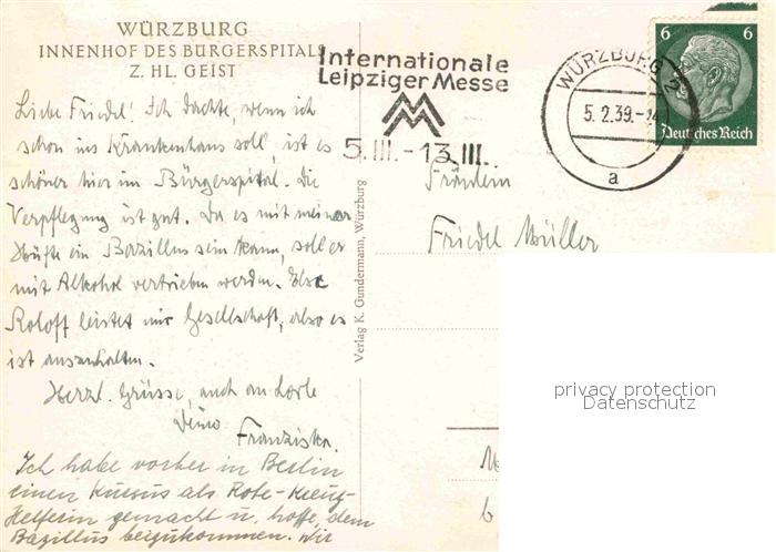 72791665 alte Postkarte WueRZBURG Bayern Buergerspital zum heiligen Geist postalisch gelaufen Erhaltung siehe scans [AndreD76] KatCode: 11110009663000