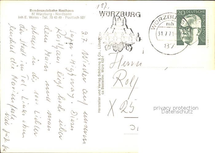 71909148 alte Postkarte WueRZBURG Bayern Bundesautobahn Rasthaus postalisch gelaufen Erhaltung siehe scans KatCode: 11110009663000