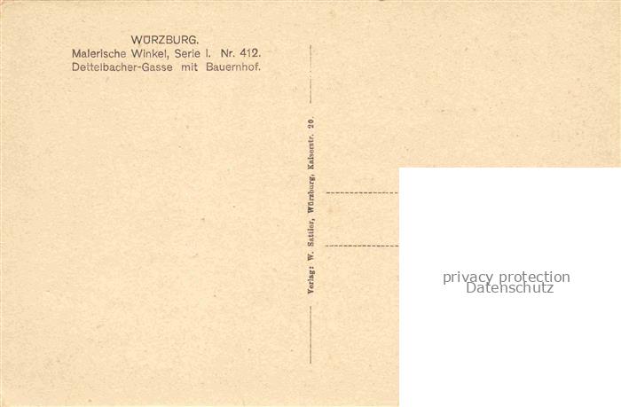 74095842 WueRZBURG Bayern Dettelbacher Gasse mit Bauernhof Malerische Winkel Serie I Nr. 412 postalisch nicht gelaufen Erhaltung siehe scans [FriedD77] KatCode: 11110009663000