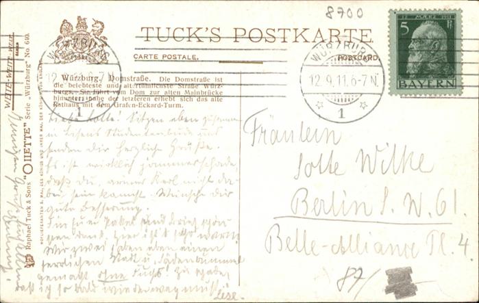 41043444 WueRZBURG Bayern Dom Strasse Brunnen postalisch gelaufen Alte Ansichtskarte Postkarte alte Postkarte Stef Katcode 11110009663000