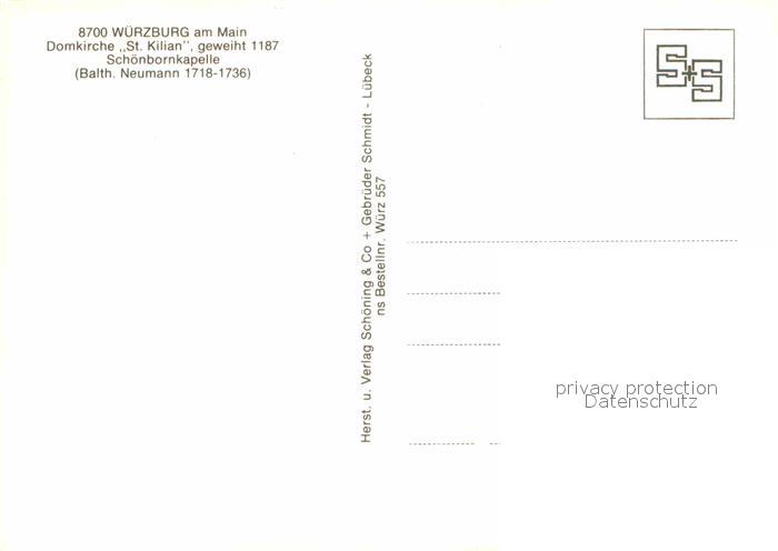 72915198 WueRZBURG Bayern Domkirche St. Kilian mit Schoenbornkapelle postalisch nicht gelaufen Erhaltung siehe scans [LiesaD40] KatCode: 11110009663000
