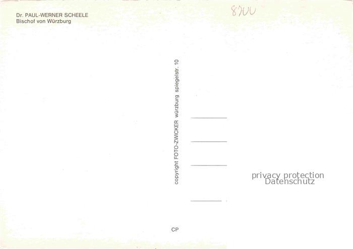 74054895 WueRZBURG Bayern Dr Paul Werner Scheele Bischof von Wuerzburg postalisch nicht gelaufen Erhaltung siehe scans [WerneD78] KatCode: 11110009663000