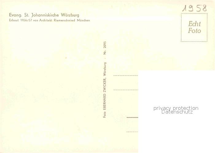 72898631 WueRZBURG Bayern Evangelische St. Johanniskirche postalisch nicht gelaufen Erhaltung siehe scans [PaolaD17] KatCode: 11110009663000