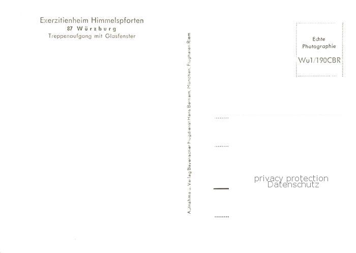 73868260 Wuerzburg Bayern Exerzitienhaus Himmelspforten Treppenaufgang mit Glasfenster postalisch nicht gelaufen Erhaltung siehe scans [WerneD78] KatCode: 11110009663000