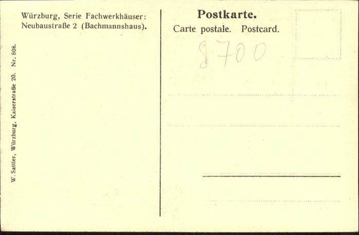 40949090 WueRZBURG Bayern Fachwerkhaus Neubaustrasse Bachmannshaus postalisch nicht gelaufen Alte Ansichtskarte Postkarte Katcode 11110009663000