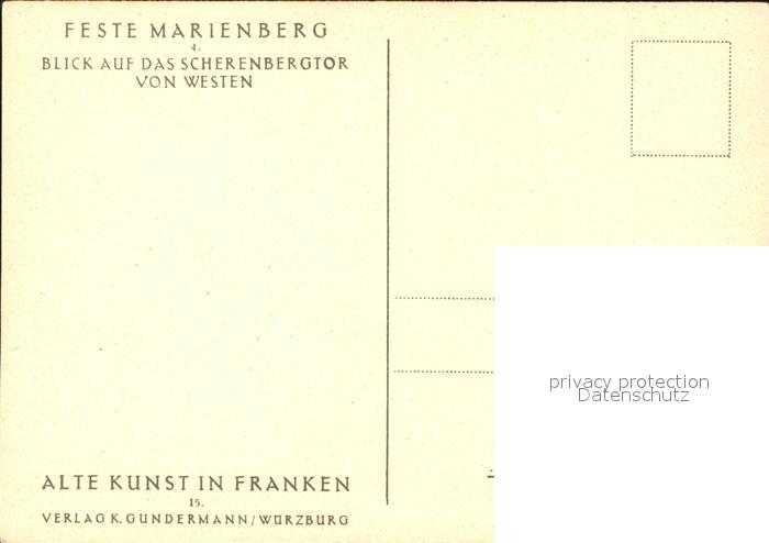 71951196 WueRZBURG Bayern Feste Marienberg Scherenbergtor postalisch nicht gelaufen Erhaltung siehe scans KatCode: 11110009663000