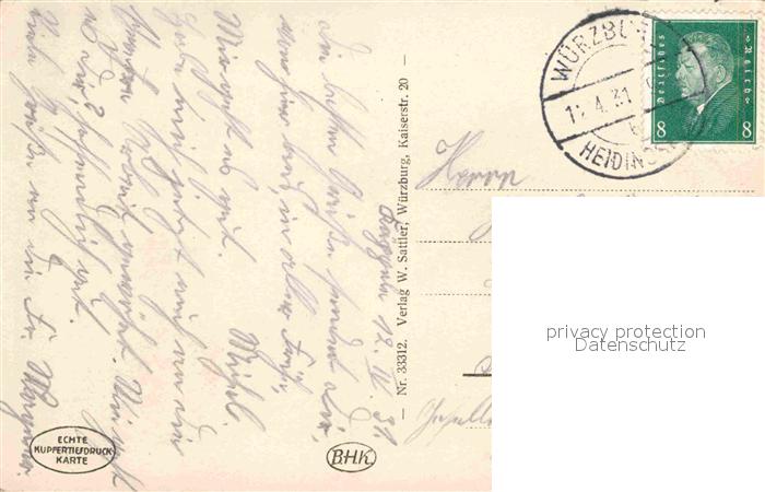 72818511 alte Postkarte WueRZBURG Bayern Festung Kaeppele Insel postalisch gelaufen Erhaltung siehe scans [KathaD81] KatCode: 11110009663000