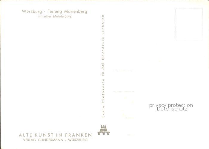 71913113 WueRZBURG Bayern Festung Marienberg mit alter Mainbruecke postalisch nicht gelaufen KatCode: 11110009663000