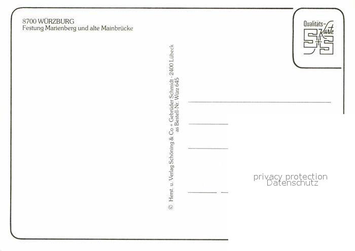72860055 WueRZBURG Bayern Festung Marienberg und alte Mainbruecke postalisch nicht gelaufen Erhaltung siehe scans [FriedD77] KatCode: 11110009663000