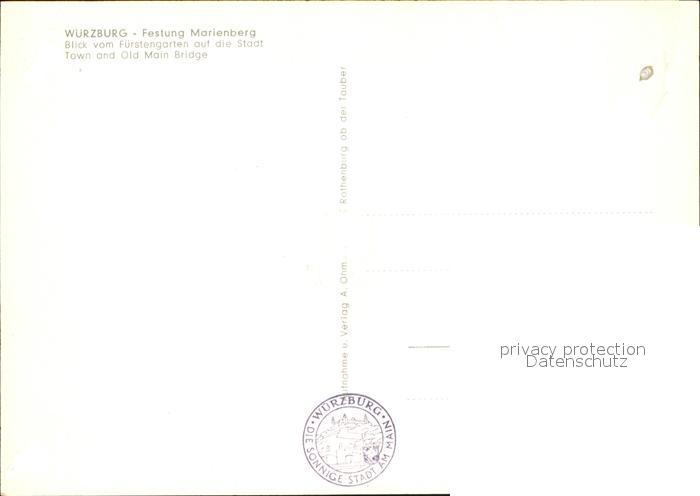 72578366 WueRZBURG Bayern Festung marienburg Blick vom Fuerstengarten postalisch nicht gelaufen Erhaltung siehe scans [AndreD76] KatCode: 11110009663000
