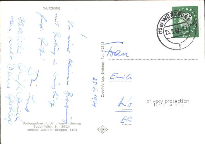 72514592 alte Postkarte WueRZBURG Bayern Fliegeraufnahme postalisch gelaufen Erhaltung siehe scans KatCode: 11110009663000