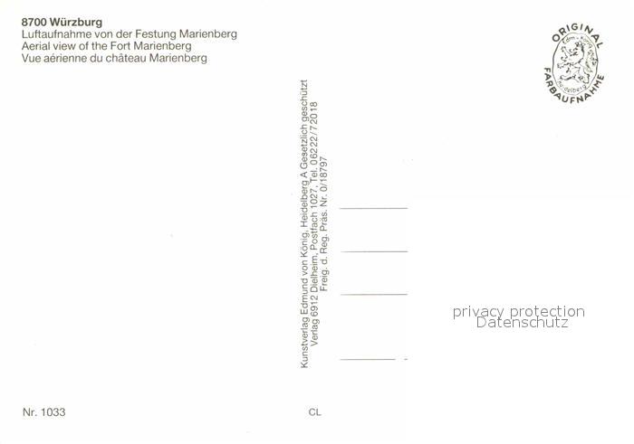 72782419 WueRZBURG Bayern Fliegeraufnahme Festung Marienburg postalisch nicht gelaufen Erhaltung siehe scans [LiesaD40] KatCode: 11110009663000