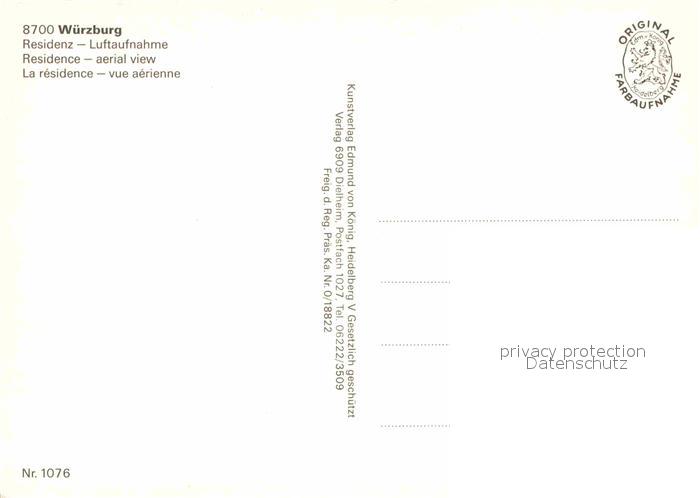 72892004 WueRZBURG Bayern Fliegeraufnahme Residence postalisch nicht gelaufen Erhaltung siehe scans [AndreD76] KatCode: 11110009663000