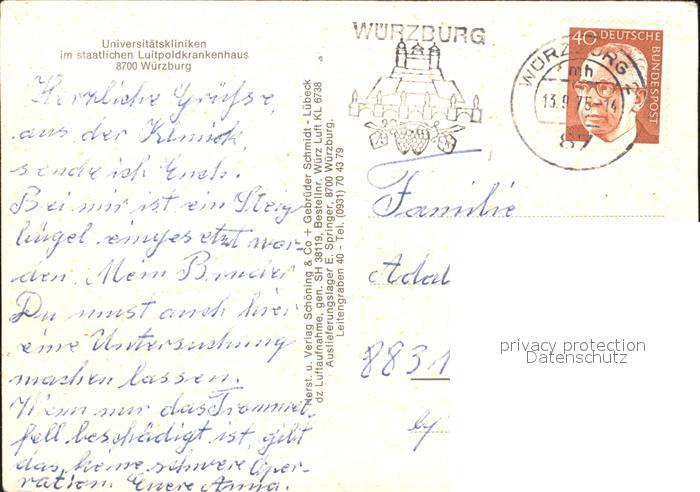 72111787 alte Postkarte WueRZBURG Bayern Fliegeraufnahme Unikliniken postalisch gelaufen Erhaltung siehe scans KatCode: 11110009663000