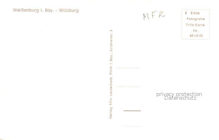 73727405 WueRZBURG Bayern Fliegeraufnahme Weissenburg postalisch nicht gelaufen Erhaltung siehe scans [LiesaD40] Lies Katcode 11110009663000