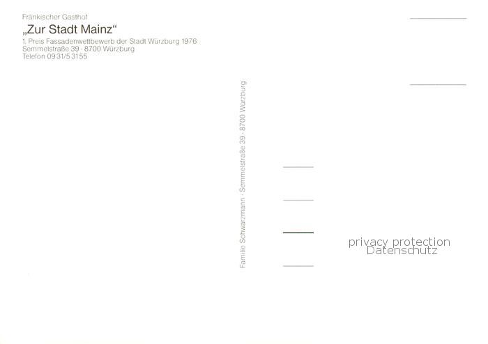 73867981 Wuerzburg Bayern Fraenkischer Gasthof Stadt Mainz postalisch nicht gelaufen Erhaltung siehe scans [WerneD78] KatCode: 11110009663000