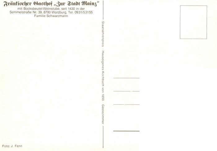 73888120 Wuerzburg Bayern Fraenkischer Gasthof Zur Stadt Mainz Gaststube Weinstube postalisch nicht gelaufen Erhaltung siehe scans [FriedD77] KatCode: 11110009663000