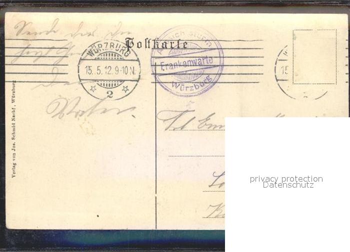72150196 alte Postkarte WueRZBURG Bayern Frankenwarte postalisch gelaufen Erhaltung siehe scans KatCode: 11110009663000