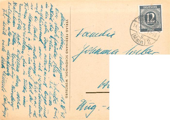 73879621 alte Postkarte Wuerzburg Bayern Fuerstbischoefliche Residenz Zeichnung postalisch gelaufen Erhaltung siehe scans [FriedD77] KatCode: 11110009663000