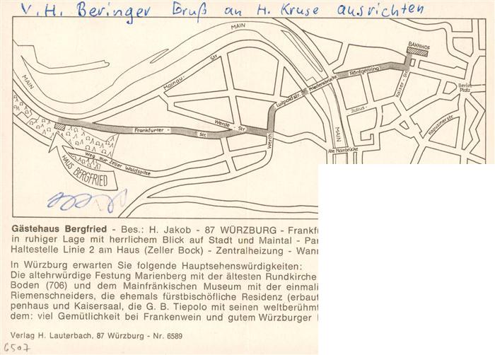 73888107 Wuerzburg Bayern Gaestehaus Bergfried Panorama Maintal postalisch nicht gelaufen Werbekarte (keine Postkarte) Erhaltung siehe scans [FriedD77] KatCode: 11110009663000