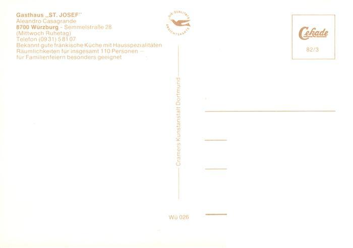 73893535 Wuerzburg Bayern Gasthaus Sankt Josef Gastraeume postalisch nicht gelaufen Erhaltung siehe scans [WerneD78] KatCode: 11110009663000