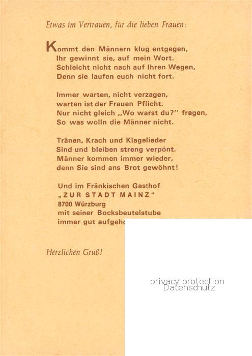 73867946 Wuerzburg Bayern Gasthof Zur Stadt Mainz mit Bocksbeutelstube Zeichnung postalisch nicht gelaufen Erhaltung siehe scans [WerneD78] KatCode: 11110009663000