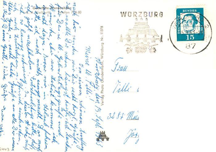 73894796 alte Postkarte Wuerzburg Bayern Gaststaette Frankenhoehe Gastraum postalisch gelaufen Erhaltung siehe scans [FriedD77] KatCode: 11110009663000