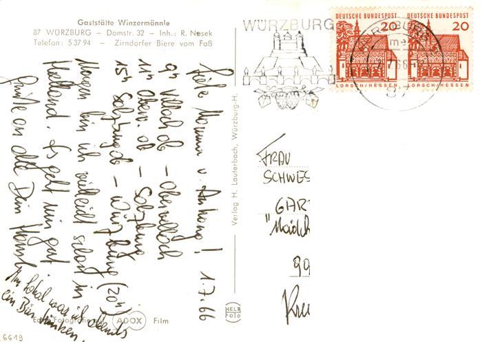 73894480 alte Postkarte Wuerzburg Bayern Gaststaette Winzermaennle Gastraeume postalisch gelaufen Erhaltung siehe scans [FriedD77] KatCode: 11110009663000