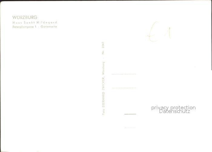 72299440 WueRZBURG Bayern Haus St Hildegard Gartenseite postalisch nicht gelaufen Erhaltung siehe scans KatCode: 11110009663000